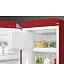Дверца выполнена из термоформируемого полимера, боковые стенки - из стали, регулируемые полки - из стекла. Цвет ручек, профиля на полках дверцы, профиля на выдвижных ящиках и профиля на стеклянных полках - хром, цвет боковых стенок - красный.