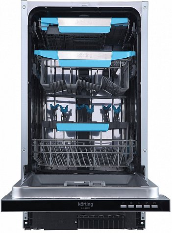 В этой посудомоечной машине Кортинг KDI 45575 предусмотрено 8 программ. Выберите автоматический режим и прибор самостоятельно установит оптимальные характеристики, чтобы сэкономить электроэнергию и другие ресурсы. Он подходит для ежедневного отмывания посуды в любом количестве и при любом состоянии. Поэтому цикл длится от 120 до 210 минут.